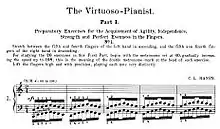 - Première partie (1-20) : exercices préparatoires pour l'agilité, l'indépendance, la force et la plus parfaite égalité de doigts