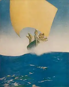 Fairbanks, de son côté, sembla avoir associé dès l'origine le projet d'un film de pirates à celui d'un film en couleurs. Avant la sortie de Fleur de lotus, l'acteur et producteur s'était pourtant montré sceptique sur l'intérêt de ce type de procédé, déclarant qu'il ne s'agissait que d'un « fétiche » et que l'ajout de couleur serait aussi peu utile que de « mettre du rouge à lèvres à la Vénus de Milo »[47],[N 4]. Après avoir assisté à la première de Fleur de lotus, il contacte Kalmus, le président de Technicolor, se montre intéressé par le procédé[52] et associe régulièrement par la suite le projet d'un film de pirates à celui d'un film en couleurs. Il déclare ainsi en janvier 1923 : « Tous les films de pirates que j'ai vus sont décevants parce qu'ils sont en noir et blanc. La couleur est le thème et la saveur de la piraterie[53]. » Il affirme aussi que le film ne sera pas tourné dans les tons de rouge et de vert qui ont, selon lui, gâché d'autres productions, mais dans des tons pastel à la manière d'un tableau de Maxfield Parrish[54],[55], une référence qui montre que Fairbanks a, à l'époque, une vision de la tonalité chromatiqe de son film de pirates très différente de que sera Le Pirate noir.