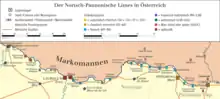 Le désastre de Teutobourg en 9 apr. J.-C. qui vit la perte des XVIIe, XVIIIe et XIXe légions ainsi que celle de trois ailes de cavalerie et de six cohortes de troupes auxiliaires, obligea à une réorganisation en profondeur des troupes en Germanie supérieure et en Pannonie[11]. La Legio XV Apollinaris fut alors envoyée soit à Emona (aussi appelée Colonia Julia, aujourd’hui Ljubljana)[12], soit à Vindobona (aujourd’hui Vienne)[13], la première hypothèse demeurant la plus vraisemblable[14].