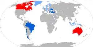 Belgique : En 1966, l'armée belge décide de s'équiper du char Leopard 1 en remplacement de ses M47 Patton. 334 Leopard 1BE sont réceptionnés entre 1968 et 1971 équipant un maximum de 8 régiments blindés à 40 chars par unité ainsi qu'une école. En service jusqu'au pour les 83 ultimes exemplaires destinés au combat[25],[26];