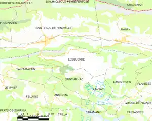 - « Orthodromie entre Lesquerde et Saint-Paul-de-Fenouillet », sur fr.distance.to (consulté le ).