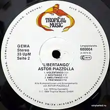 Face B de l'album Libertango réédité chez Tropical Music en 1984.