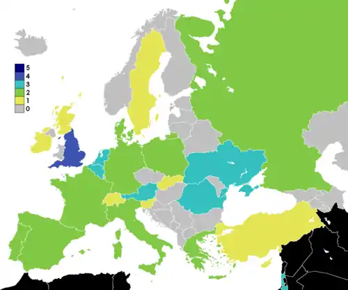 - Les 3 premières associations du Prix du fair play UEFA (Norvège, Angleterre et Suède[3] ) obtiennent une place supplémentaire