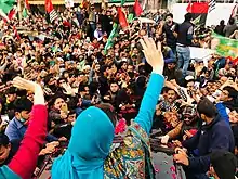 Le , la Haute cour d'Islamabad ordonne la libération conditionnelle de Nawaz et sa fille, jusqu'à la tenue d'un procès en appel[31]. Le , Shehbaz Sharif est à son tour arrêté pour une affaire de blanchiment d'argent[32]. Quelques jours auparavant, la Ligue participait à la fondation du Mouvement démocratique pakistanais avec son ancien rival le Parti du peuple pakistanais dans le but de combattre le gouvernement d'Imran Khan. Avec son père en exil et son oncle en prison, c'est Maryam qui mène les rassemblements du mouvement en tant que vice-présidente de la ligue.