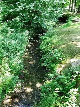 D’ouest en est, le cours du ruisseau suit une pente douce avec une altitude de cent cinquante-six mètres à la frontière avec Pecqueuse[18] et une altitude de cent dix mètres à la frontière avec Forges-les-Bains[19].
