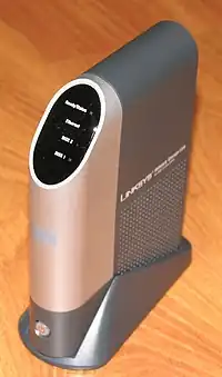 Le NSLU2 est une unité de stockage en réseau (NAS) pour disques durs USB 2.0[3],[4].