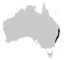 Cette espèce est endémique d'Australie. Elle se rencontre le long de la côte orientale du Sud-Est du Queensland jusqu'au Sud de la Nouvelle-Galles du Sud. La zone de répartition de l'espèce est d'environ 73 000 km2[2].