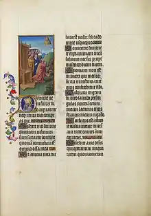 Un livre d'heures est un livre liturgique destiné aux fidèles catholiques laïcs — à la différence du bréviaire, destiné aux clercs — et permettant de suivre la liturgie des Heures. En complément de ce recueil de prières liées aux heures de la journée, le livre d'heures comprend généralement un calendrier pour suivre l'évolution de la liturgie tout au long de l'année, mais aussi parfois des psaumes, les évangiles ainsi que des offices particuliers. Il s'agit du type le plus courant d'ouvrage médiéval enluminé même si tous ne comportent pas de décorations. Ils constituent à ce titre une importante documentation sur la vie à la fin du Moyen Âge et sont la source d'une iconographie sur la chrétienté médiévale.
