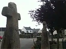 Pourtant, la croix actuelle ne porte ni écusson ni date. Elle est en granite de Trégana et a été érigée là en 1801 en remplacement d'une croix ancienne détruite pendant la Révolution[66]. Cette croix provenait de Pont-Rohel et était surnommée Croix de Anglais sans doute en souvenir de l'expédition anglaise de 1558 qui ravagea Le Conquet, l'abbaye de Saint-Mathieu et Plougonvelin[Note 4].