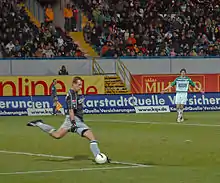 Si le ballon est en jeu et que l’exécutant touche le ballon une seconde fois avant que celui-ci n’ait été touché par un autre joueur, un coup franc indirect est accordé à l’équipe adverse qui doit être exécuté à l’endroit où la faute a été commise.