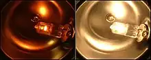 La courbe pour 3 000 K correspond au rayonnement typique d'une lampe à incandescence. Une partie du rayonnement est émis dans le domaine visible. Toutefois le maximum d'émission se situe encore dans l'infrarouge proche.