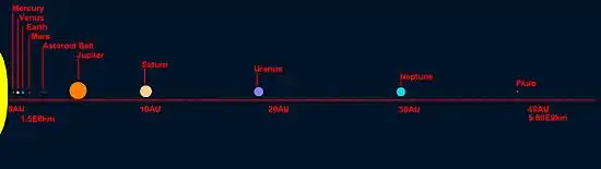 L'expression d'origine exprimait les distances en dixièmes de la distance Terre-Soleil (en unité astronomique, symbole « au »). Les distances supposées sont :