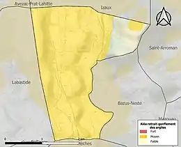Le retrait-gonflement des sols argileux est susceptible d'engendrer des dommages importants aux bâtiments en cas d’alternance de périodes de sécheresse et de pluie. 89,4 % de la superficie communale est en aléa moyen ou fort (44,5 % au niveau départemental et 48,5 % au niveau national). Sur les 151 bâtiments dénombrés sur la commune en 2019, 151 sont en aléa moyen ou fort, soit 100 %, à comparer aux 75 % au niveau départemental et 54 % au niveau national. Une cartographie de l'exposition du territoire national au retrait gonflement des sols argileux est disponible sur le site du BRGM[39],[Carte 3].
