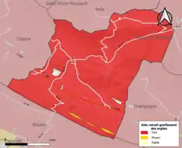 Les mouvements de terrains susceptibles de se produire sur la commune sont soit des chutes de blocs, soit des glissements de terrains, soit des effondrements liés à des cavités souterraines, soit des mouvements liés au retrait-gonflement des argiles. Près de 50 % de la superficie du département est concernée par l'aléa retrait-gonflement des argiles, dont la commune de Loubens[35]. L'inventaire national des cavités souterraines permet par ailleurs de localiser celles situées sur la commune[36].