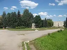 ![]() Monument en l'honneur de l'attribution à la ville de l'ordre de la Guerre patriotique. | ![]() Place Lénine. |