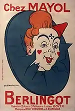 - 1920 : Chez Mayol (Concert-Mayol). Berlingot : opérette en 2 actes et 3 tableaux de Lucien Boyer, musique de Willy Redstone et A. Stanislas : affiche illustrée par Adrien Barrère (1877-1931) En ligne sur Gallica