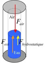 Prenons le système à l’équilibre : Fair = Feau. Ces deux forces s’exercent sur une même surface. On en déduit que : Pair = Peau, d’où