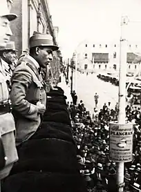 Cerro au balcon du palais présidentiel. - Un soulèvement militaire, à Cajamarca, dirigé par le commandant Gustavo Jiménez, éclata. Vaincu, le , à Paiján, il se suicida d'une balle dans la tête.