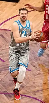 Au cours de la saison 2019-2020, Dončić est sélectionné pour son premier All-Star Game en tant que titulaire de la conférence Ouest[115]. Il devient le plus jeune joueur européen à commencer un All-Star Game. Le , à l'issue du match face au Magic d'Orlando, il devient le premier joueur de l'histoire de la NBA, à inscrire 300 paniers à trois points avant l'âge de 21 ans[116]. Le 4 mars, Dončić enregistre son 22e triple-double en carrière, dépassant Jason Kidd pour le plus grand nombre de triple-double de l’histoire de la franchise, avec 30 points, 17 rebonds et 10 passes décisives dans une victoire en prolongation 127-123 contre les Pelicans de La Nouvelle-Orléans[117].