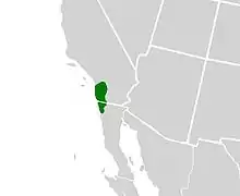 Il est présent en Amérique du Nord, en Californie, sur une petite zone entre les États-Unis et le Mexique[2].