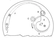 - le moteur : dispositif qui transforme l'énergie emmagasinée d'un poids ou d'un ressort en un mouvement « non uniforme » mais nécessaire au système ;