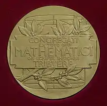 La médaille Fields est la plus prestigieuse récompense en mathématiques avec le prix Abel. Elle est considérée comme équivalente à un prix Nobel, inexistant pour cette discipline[alpha 1].