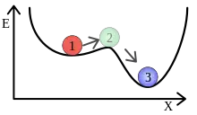 Si on considère un système physico-chimique représenté par son énergie potentielle, un état métastable sera caractérisé par un état qui correspond à un minimum local d'énergie. Pour que le système puisse atteindre l'état du minimum absolu de l'énergie correspondant à l'état d'équilibre thermodynamique, il faut lui fournir une quantité d'énergie appelée énergie d'activation.