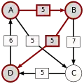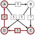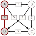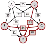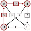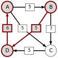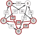 - dans le cas contraire, supprimer du graphe le ou les arcs dont la pondération est minimale, c'est-à-dire le ou les arcs correspondant à la défaite la plus courte, puis retourner à l'étape 1.