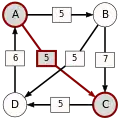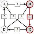 On élimine à nouveau l’arc à la pondération la plus faible, qui part de C pour aller vers E.