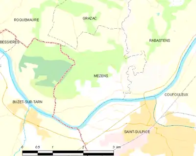 Mézens est limitrophe de cinq autres communes dont une dans le département de la Haute-Garonne.