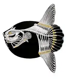 Au long de son évolution, la nageoire caudale de la môle a disparu pour être remplacée par une pseudo-queue appelée clavus. Cette structure est formée à la convergence entre les nageoires dorsale et anale[12],[13]. Sans une véritable queue pour permettre une poussée vers l'avant et avec seulement des petites nageoires pectorales, la môle utilise ses longues et minces nageoires dorsale et anale pour la propulsion en les faisant bouger d'un côté à l'autre[9].