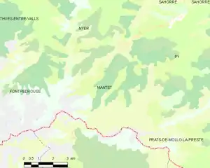 Mantet est une commune française située dans le sud du département des Pyrénées-Orientales, en région Occitanie. Sur le plan historique et culturel, la commune est dans le pays de Conflent, correspondant à l'ensemble des vallées pyrénéennes qui « confluent » avec le lit creusé par la Têt entre Mont-Louis et Rodès.