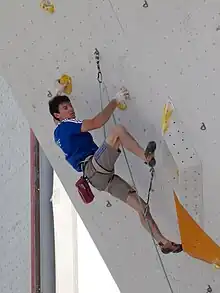 Manuel Romain en demi-finale des championnats d'Europe d'escalade 2013 à Chamonix
