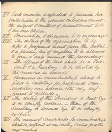 "au début, personne ne pensait à faire du club un centre littéraire, mais voilà juste la différence entre un club d'hommes ou de femme; pour le premier le club est un lieu de loisirs et pour la dernière, il doit être un lieu de culture pour soi dans une direction ou une autre."