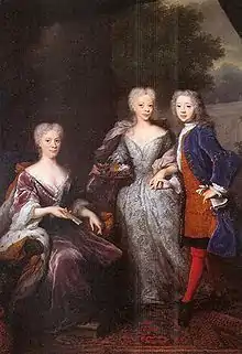 - Caroline, née en 1743, qui épouse en 1760 son cousin Charles-Christian de Nassau-Weilbourg et sera régente pour son frère nommé ci-après