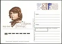 - Un entier postal (timbre imprimé sur carte postale) célébrant le centenaire de sa naissance a été émis en 1992 par la Poste soviétique.