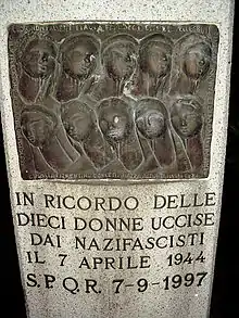En 1997 sur le lieu du massacre la municipalité fit placer une plaque commémorative, à l'initiative de Carla Capponi (1918-2000) ancienne résistante des GAP (Gruppi d'Azione Patriottica) puis parlementaire[1] et à la suite de recherches menées par le journaliste et historien de la Résistance Cesare De Simone († 1999), qui a fait revivre le souvenir du massacre et a rendu leurs noms aux victimes[2] : Clorinda Falsetti, Italia Ferracci, Esperia Pellegrini, Elvira Ferrante, Eulalia Fiorentino, Elettra Maria Giardini, Concetta Piazza, Assunta Maria Izzi, Arialda Pistolesi, Silvia Loggreolo. Le cadavre d'une des femmes aurait été retrouvé nu sous le pont[3].