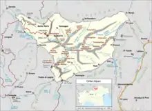 Carte des Alpes orientales avec le massif de l'Ortles en 48a. | |