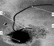 Les observations de mastigonèmes à l'aide de la microscopie optique datent du XIXe siècle[8],[9],[10],[11],[12]. Considérés comme des artefacts par certains, leur existence serait confirmée par la microscopie électronique[13],[14].