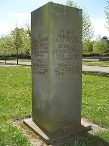 Le tombeau de la famille Abraham / Hinrichsen au cimetière du Sud de Leipzig a été rasé dans les années 1980. Depuis 1992, un mémorial se dresse à l'ancien emplacement.