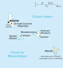 C'est l'île la plus au sud de l'archipel des Comores, en arabe « Jouzour al qamar » (جزرالقمر), c'est-à-dire les « îles de la Lune » — cette étymologie populaire est cependant apocryphe, ce dernier nom venant plutôt de l'ancien nom arabe de Madagascar, « Ķ(u)mr’ » (ce qui en ferait les « îles malgaches »)[34],[35].