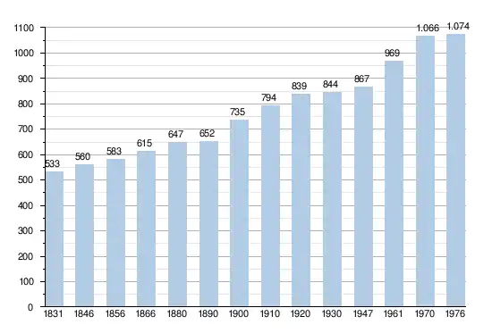- Sources : INS, Rem. : 1831 jusqu'en 1970 = recensements, 1976 = nombre d'habitants au 31 décembre[2].