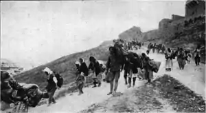 En avril 1915, commence le génocide arménien, le gouvernement ottoman organise l'extermination systématique de ses sujets arméniens, minorités de l'empire. Le génocide perpétré pendant et après la Première Guerre mondiale est mis en œuvre en deux phases : le massacre massif de la population masculine valide par des exécutions et la soumission des conscrits de l'armée aux travaux forcés, suivi de la déportation des femmes, des enfants, des personnes âgées et des infirmes dans des marches de la mort vers le désert de Syrie. Forcés à avancer par des escortes militaires, les déportés sont privés de nourriture et d'eau et soumis à des vols, viols et massacres périodiques[7],[8].