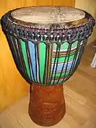 La hauteur du son émis dépend de la tension relative de la membrane sur son support : celle-ci est donc accordable.