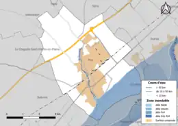 En Loir-et-Cher, les crues de la Loire représentent des volumes d'eau et des débits quatre à cinq fois supérieurs à ceux du Cher et du Loir : la superficie des zones et l'ampleur des dégâts peuvent être considérables. Les crues historiques sont celles de 1846 (6,60 m à l'échelle de Blois), 1856 (6,78 m), 1866 (6,70 m), 1907 (5,63 m) et 2003 (3,78 m). Le débit maximal historique est de 5 100 m3/s (crue de 1846) et caractérise une crue de retour centennal[40]. Le risque d'inondation est pris en compte dans l'aménagement du territoire de la commune par le biais du Plan de prévention du risque inondation (PPRI) de la Loire amont[41].
