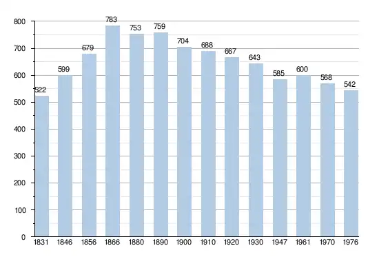 - Source: DGS, 1831 à 1970=recensements population, 1976= habitants au 31 décembre