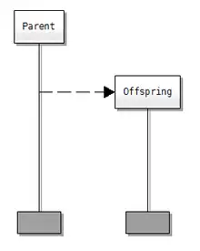 - Tête d'instance, ligne de vie, et de fin de vie: une ligne verticale avec une boite au sommet, et une boite ou une croix à sa base.