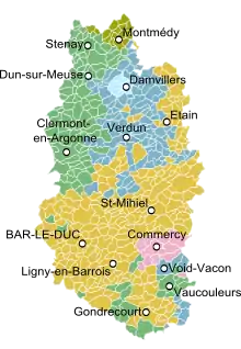 Les villes principales sont : Verdun, Bar-le-Duc, Commercy, Saint-Mihiel, Ligny-en-Barrois, Étain, Montmédy, Stenay, Revigny-sur-Ornain et Vaucouleurs.