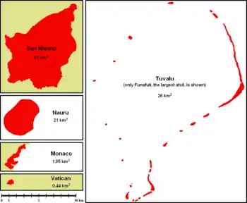 | Moins de 100 km2 | 5 États | Moins de 50 000 habitants | 9 États |