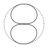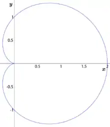 Courbe cardioïde, échelle linéaire, l'axe horizontal est celui de la capsule, tournée vers la droite.